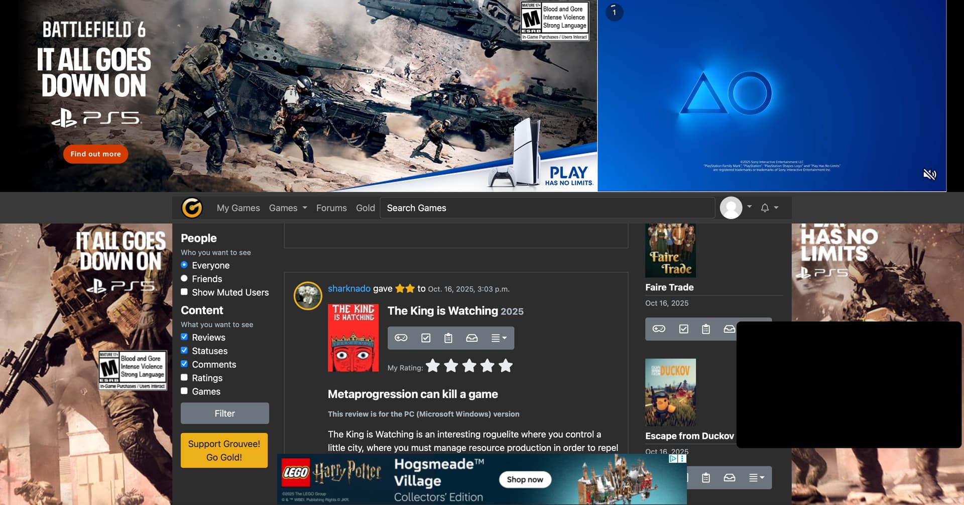 Recently, I saw some huge jumps in ad revenue. We’re not talking millions, maybe $10-$15 a day kind of money. Turns out Battlefield 6 must be spending a ton of money right now. I’ve got a message into Playwire support to see if we can figure this out. If not, I’ll just have them disable this style of ad. It’s obviously not worth the money to make the site unusable.