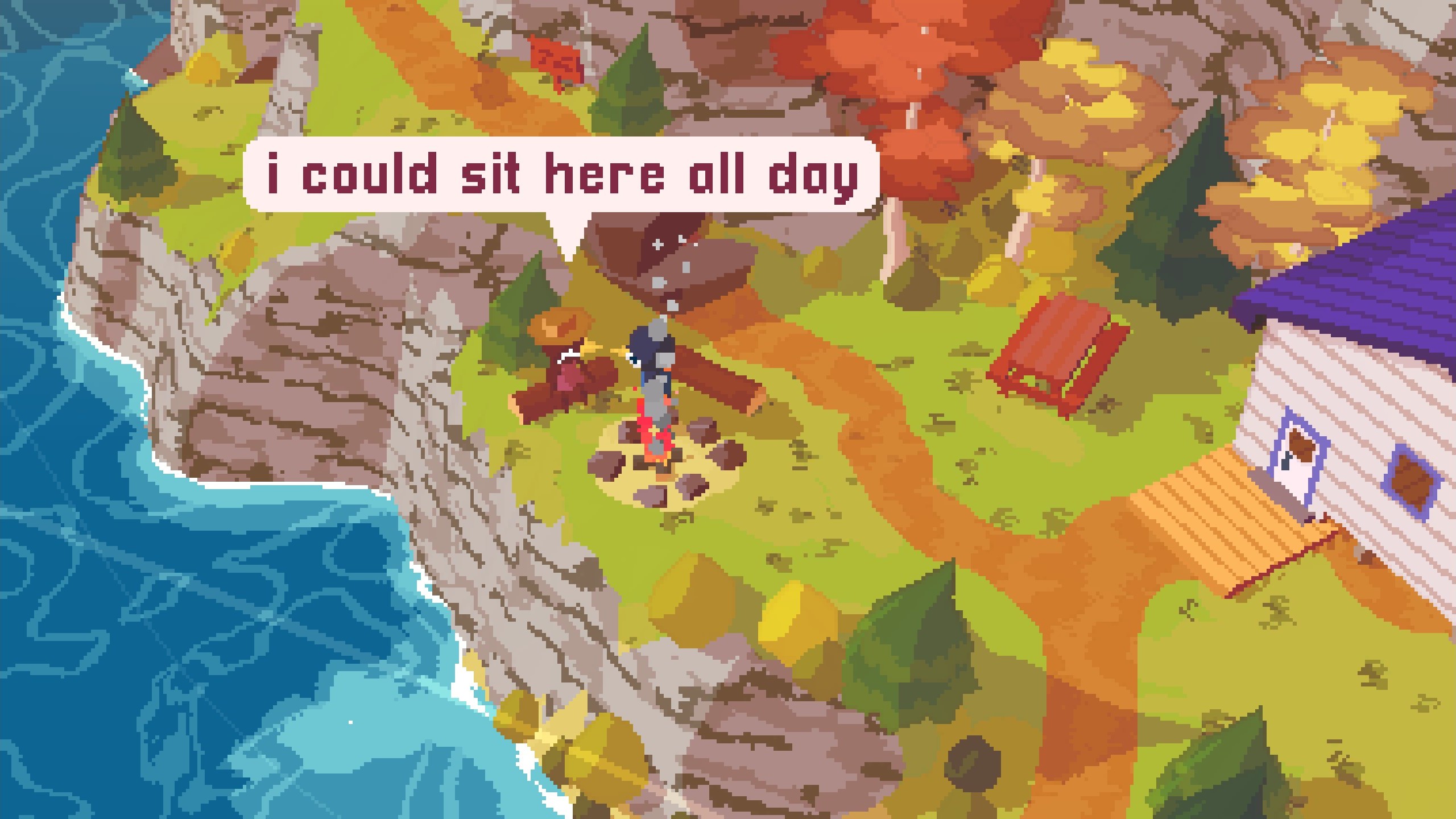 The goal of hiking Hawk Peak Trail is introduced by a fellow bird friend outside your cabin. The conversation holds some mystery about your character and from the conversations I had with other animal friends later, the puzzle pieces are adding up to an apathetic or depressed mental state. I hope by the end of this game, Claire finds some peace and renewed vigor. I know after a hike I usually feel much better. I should probably make time to go on one soon now that the weather is getting cooler.