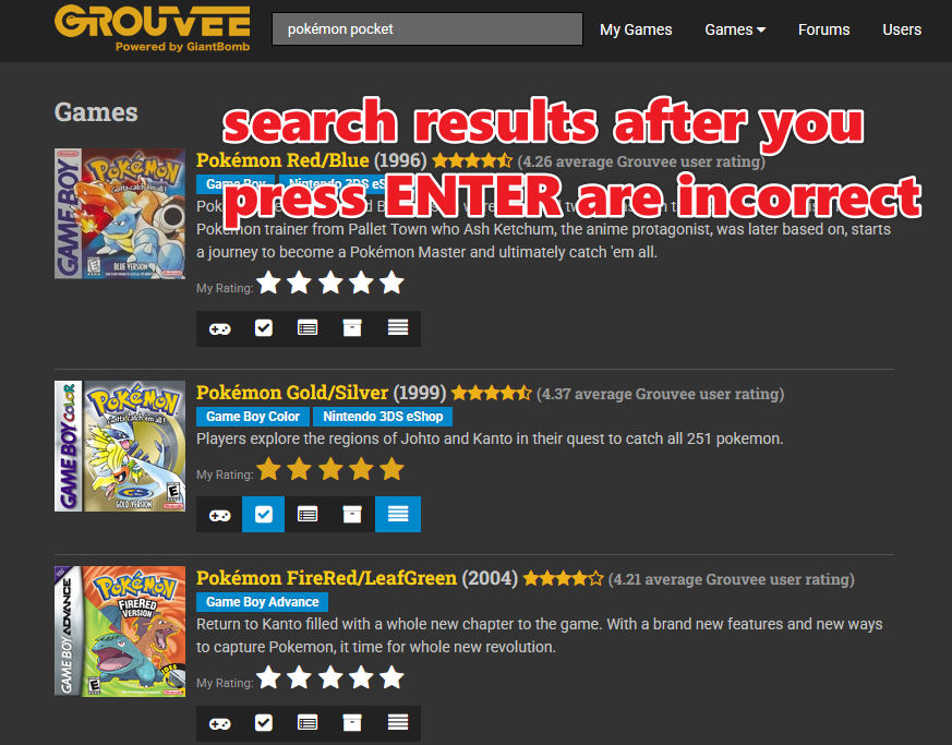 However, if I press ENTER to actually show the entire search results, what I get is other related games but not the ones that should be showing based on my search query: