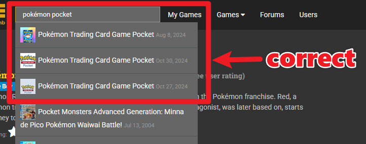 For example, if I search for “pokémon pocket” I see the expected games in the search results preview that appears below the search bar: